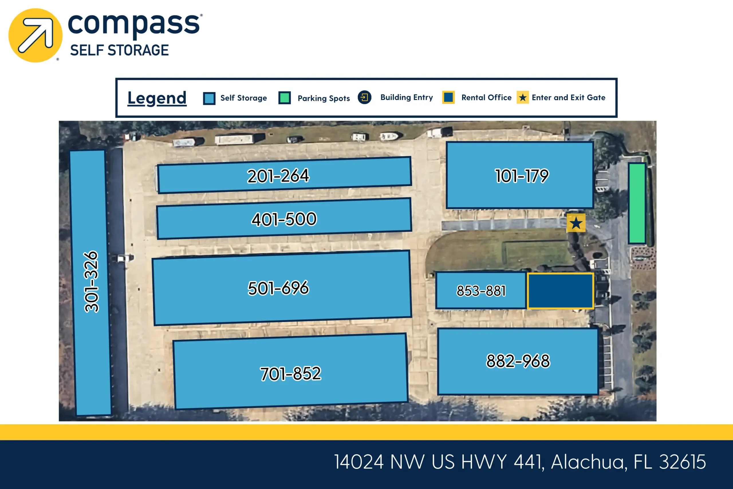 Rent Online at Compass Self Storage in Alachua, FL