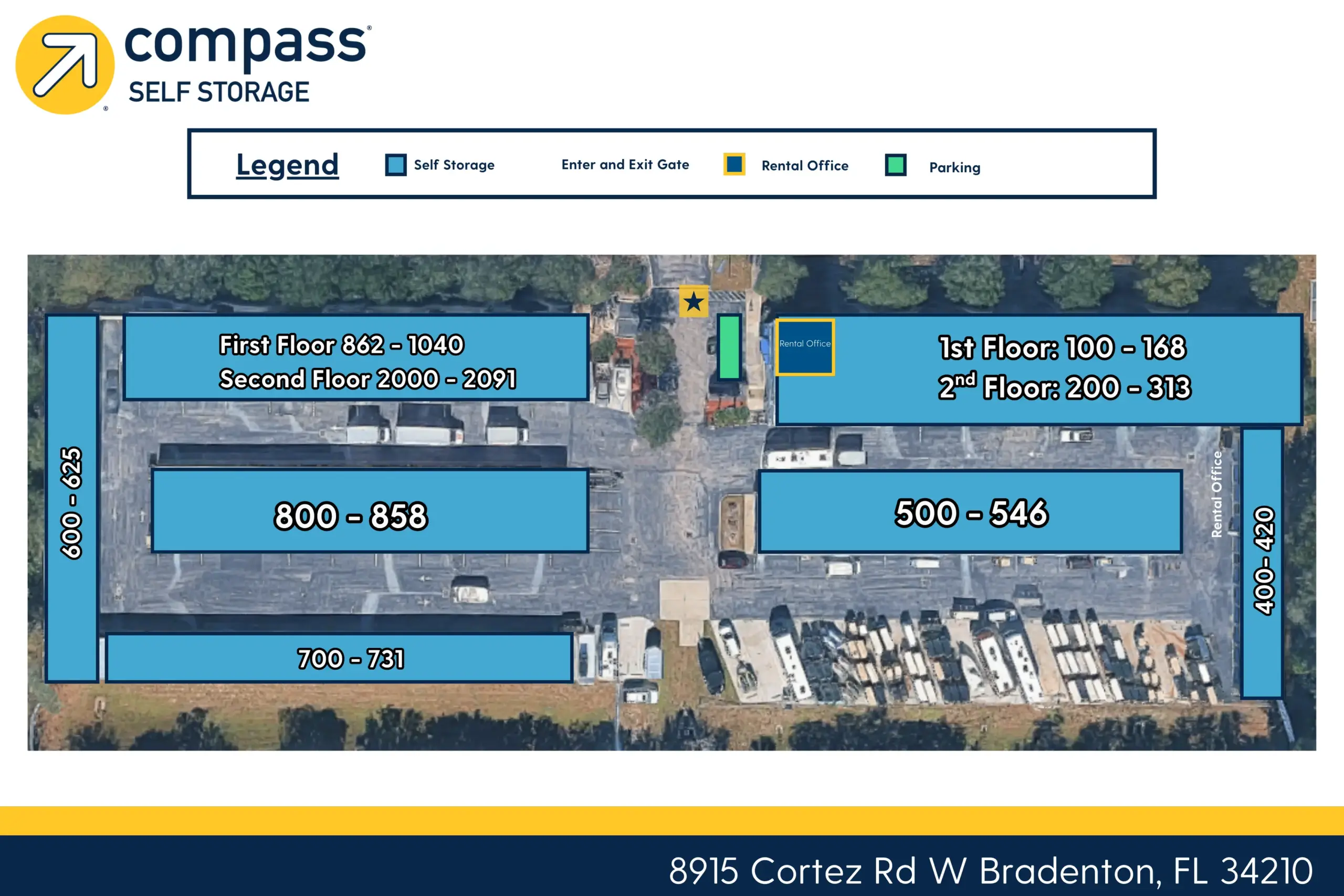 With our convenient location and extensive range of beneficial features including climate controlled storage, vehicle storage, and drive-up access, Compass Self Storage provides all the essentials you require. Get in touch with us today to gather additional information about self storage in Bradenton.