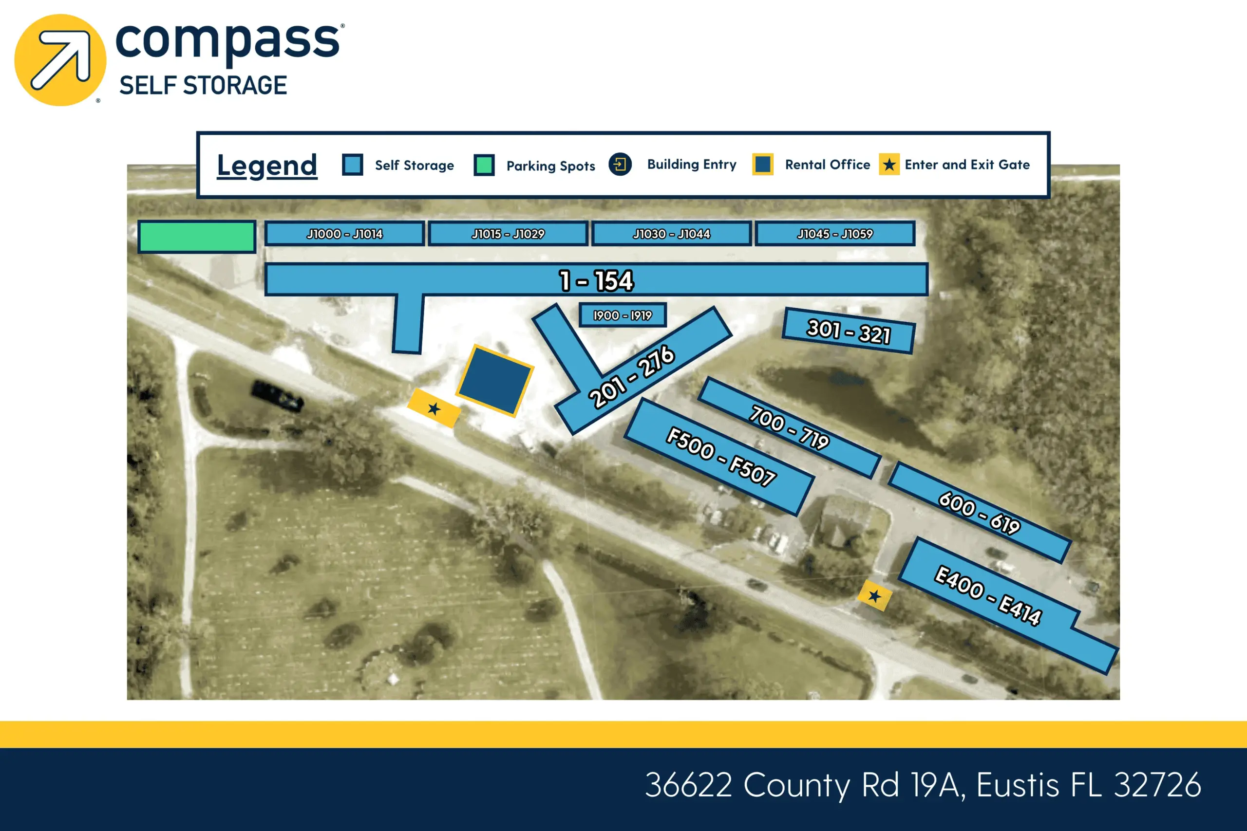 Compass Self Storage can assist you with your storage needs. Serving Eustis residents, businesses, and visitors, we offer cost-effective, top-tier storage options tailored to your needs. For more insights, check out our blog, FAQ page, and storage and packing tips. Allow us to handle your self storage, boat storage, and vehicle storage requirements seamlessly.